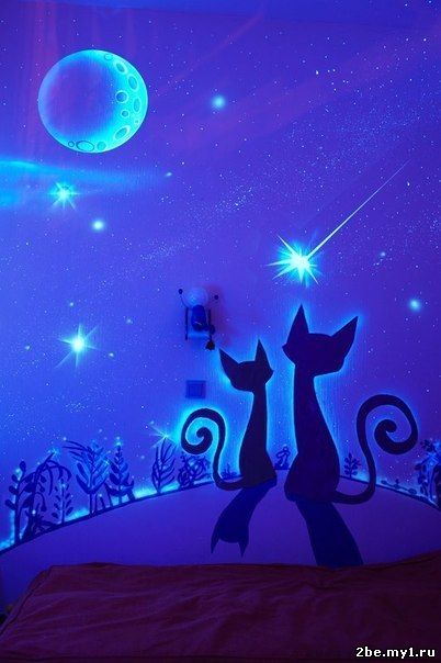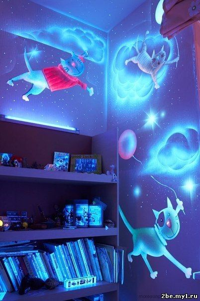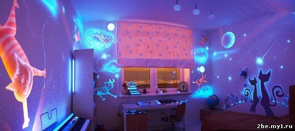 Оригинальный дизайн детской комнаты, сделанный при помощи флуоресцентной краски.